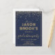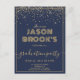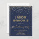 convites para graduação em azul-marinho com brilho dourado, tipo de script e uma tipografia de nome decorativo muito única. Adequado para a faculdade ou formando segundo grau.