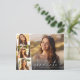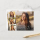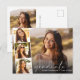 Cartaz de anúncio da graduação elegante com a foto do formando sobreposta com uma faixa de três fotos quadradas menores e "Formando" em uma escritura branca moderna e seu nome e ano de aula em uma tipografia branca simples. No verso, adicione uma foto adicional e uma mensagem personalizada.