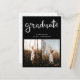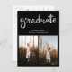 Cartão Postal De Anúncio Graduado Preto Elegante Script | Grad Duas Fotos