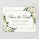 Cartão Postal De Anúncio Guardar A Data De Aquarela Verde Floral Dourada