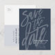 Cartão Postal De Anúncio Guardar a Data Moderna do Script de Pincel Azul