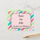 Cartão Postal De Anúncio Guardar a data Pink e Blue Stripes