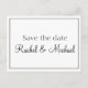 Uma adorável salvação do cartão-postal, este item apresenta um fundo branco com texto escrito em lindas letras pretas. Personalize o seu hoje! Cartão postal Design: WeddingsbyRhoadie