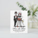 Rosa vermelha de brancas pretas Skeletons Halloween Casamento Salve a data PostCard Art e Design por Julie Alvarez