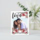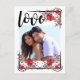 Um Boho Chic romântico e sem carinho Salve o design de Data armou sua foto favorita do casal. Rosas vermelhas e folhas se entrelaçam com sotaques vitorianos para criar três cantos do quadro. O amor está escrito em uma fonte aberta e arejada. A parte de trás da Data de Salvamento tem a data gravada na mesma fonte bonita, seu endereço de retorno e detalhes do casamento. Chic e a maneira moderna de compartilhar suas notícias!