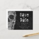Cabeça de crânio gótica Salve a data vintage preto e branco convite de casamento divertido do Dia das Bruxas. Maldito Hallowedding. Até que a morte nos faça um roteiro. Imagem copyright Marg Seregelyi Fotografia.