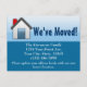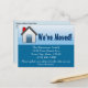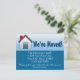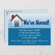 Nós nos mudamos! Movendo a alteração do cartão postal de endereço. Pequena casa azul, doce, com tons de fundo azul.