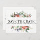 Concebido para combinar com a nossa coleção de casamento floral em aquarela Mystical Winter, rodeado por delicadas flores de inverno pintadas, poinsettia e pinhas e colocado sobre um fundo branco, este design é atraente e muito bonito. O cartão moderno e simples de "save the date" aparece no centro entre a folhagem e um modelo de cartão postal está no verso. Todo o estilo de texto, cores e tamanhos também podem ser modificados para atender às suas necessidades