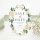 Cartão Postal De Anúncio Ivory Floral Wreath com Greenery Salve a Data