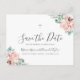 Este cartão postal, cor-de-rosa e branco, Christian Save the Date, apresenta um simples roteiro de cruz e caligrafia elegante e é enquadrado por belos florais cor-de-rosa. O verso oferece espaço para adicionar informações adicionais, como uma de suas fotos de noivado, uma mensagem personalizada e o endereço do seu site de casamento. Altere-os facilmente usando a ferramenta modelo. Projetado como parte da minha elegante coleção de casamento Katrina. Não se esqueça de navegar nos outros produtos desta coleção para criar um na moda, uma busca coordenada pelo dia do seu casamento. Se você precisar de assistência para personalizar este produto ou quiser que eu crie outros itens correspondentes, entre em contato comigo em admin@albamarie.com. Eu ficaria feliz em ajudar!