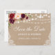 Kraft Luzes de Corda Rústicas Renda Aquarela Burgundy Floral Save the Date Cartão Postal - Verso Impresso