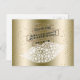 Elegantes cartões-postais "Save the Date" em champanhe com confetes cintilantes e jóias de ouro e diamantes falsos para a celebração de aniversário dela - Um fundo de ouro metálico falso para um efeito brilhante tem uma fita cintilante torcida no topo. Lábios de gema de diamante falso por baixo. As bordas laterais são decoradas com pontos de confete dourado espalhados. Lê "Save the Date" no topo da fita em letra cursiva elegante. Nome personalizado e título do evento com data abaixo em letras modernas no resto da fita. Texto preto com aparência de sombra. Todo o texto é completamente personalizável para se adequar a qualquer idade ou ocasião especial - palavras, cores, estilos, tamanhos. Envie cartões-postais "Save the Date" personalizados e glamorosos em ouro de Hollywood para os convidados da festa de aniversário. T