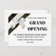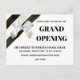 Uma ilustração maravilhosa de uma fita branca brilhante falsa com um diamante embutido repousando contra uma fita diagonal branca e preta com bordas de dourado vibrante, posta contra um fundo branco que tem modelos pretos para a sua redação personalizada. A parte traseira tem um modelo para detalhes adicionais para novos clientes e convidados, que pode ser excluído se não for necessário. Estes são ideais para qualquer empresa que tenha um lançamento suave ou para empresas que desejam informar aos potenciais compradores para "salvar a data" para a sua grande inauguração. Estes cartões planos luxuosos e elegantes irão deliciar os seus convidados.