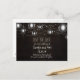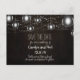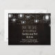 Cartão postal com fundo de madeira rústica com lindas lâmpadas penduradas que lhe dão uma aparência de campo. Perfeito para o seu casamento no exterior. Personalize-o com os seus nomes e tenha o melhor e mais inesquecível casamento a partir dos cartões salve a data perfeitos para a sua família e amigos.
