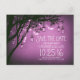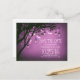 A safra roxa salva a data com ramos de árvore antigos rústicos, luzes brilhantes de cordas e cheio de vagalumes de pedreiro.