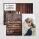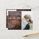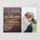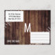 Elegantes, chiques e rústicas pranchas de madeira marrom e luzes de diamante pendentes brancas, cartões postais de casamento Save-the-Date. Este design clássico e sofisticado é perfeito para o casal que vai se casar trendy e elegante. Personalize com sua própria mensagem na frente, bem como um monograma inicial personalizado no verso. Todo o design de impressão de fotos.