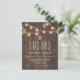Luzes Rústicas de Outono & Folhas Eu Caso Churrasco - apresentando luzes de jarro de mason preenchidas com vagalumes cintilantes com guirlanda frondosa em um fundo de madeira de celeiro. O convite perfeito para o seu Eu Caso Churrasco. Perfeito para o casal que ama o estilo rústico. Eu Caso Churrasco faz parte de uma coleção.