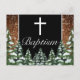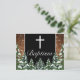 Convite de foto de cartão postal do Baby Baptism. Madeira marrom russa, fundo nevando e floresta nevada. Cozy Vintage country. Há mais itens disponíveis neste estilo na nossa loja. Você pode editar a design, alterar cores, fontes e adicionar texto extra clicando no link "personalizar mais".