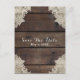 Cartão Postal de Madeira Rústica de Celeiro e Renda Romântica Salvar a Data.