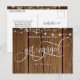 Acaba de ficar noivo? Parabéns! Compartilhe com a família e amigos a sua grande notícia com este lindo cartão-postal horizontal de anúncio de noivado rústico. Fundo de tábuas de madeira rústica com luzes de corda românticas no topo e a frase "Fiquei Noiva(o)" em bela caligrafia branca manuscrita. Possibilidade de adicionar a sua própria mensagem e adicionar informações extras (como informações da festa de noivado ou informações de "salve a data") se desejar, para adicionar mais linhas de texto você pode selecionar personalizar ainda mais. Verso com elementos de caligrafia manuscrita e detalhes de madeira e luzes de corda no topo.