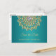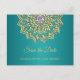 Elegante e moderno, SALVE OS cartões postais da DATA para enviar seus convidados. Caligrafia com mandala de ouro e diamante. Teal, azul, verde. Modelos personalizados online para facilitar a edição. Adicione seu texto à frente e atrás do cartão. Entre em contato com o designer para obter solicitações especiais.