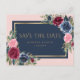 Cartão Postal De Anúncio Marinho Blue Burgundy Blush Floral Rosa Salvar Dat