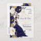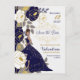 Cartão Postal De Anúncio Marinho Blue Floral Quincanera Salvar a Data