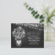 Chalkboard salva o cartão-postal com cheio de jarro de pedras de flores silvestres, margaridas, folhas e corações amorosos e luzes brilhantes brilhando penduradas no fio. O quadro-negro de cinzas giras românticas e rústicas salvam os cartões postais com grande coração de amor e as iniciais da noiva e do noivo.