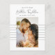 Script moderno Salve o cartão-postal de foto de Data com caligrafia manuscrita lendo MELHOR JUNTO ao lado de sua foto de noivado favorita, assim como sua data e detalhes no verso. Listras verdes e poeirentas minimalistas unem tudo.