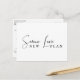 Deixe seus convidados saberem que a data do seu casamento mudou com este simples e elegante cartão postal de mudança de data de casamento. "Mesmo Amor Novo Plano" está escrito em letra cursiva contemporânea na frente. No verso, você pode personalizar as informações da nova data de reserva com mais detalhes.