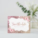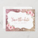 Quadro brilhante de rosa dourado falso e script "save the date" (salvar a data) com floral, elegante e na moda cor-de-rosa pincelado. Excelente guardar o cartão postal para casamento moderno, casamento romântico e casamento de jardim botânico. Ver todas as peças correspondentes na coleção