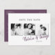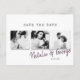 Um casamento de fotos de na moda mínimo moderno salve o cartão de data. Com espaço durante um ano em revisão ou mensagem no verso.