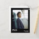 Um cartão postal de anúncio de graduação de PhD minimalista em preto e branco. Basta adicionar sua foto e informações, adicionar esses anúncios ao seu carrinho e deixar todos saberem sobre essa grande conquista.