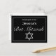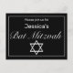 O convite postal do Bat Mitzvah. Na moda moderno, design branco e preto. Há mais itens disponíveis neste estilo na nossa loja. Você pode editar a design, alterar a cor do plano de fundo, fontes e adicionar texto extra clicando no link "personalizar mais".