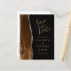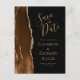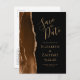 Este elegante e moderno salve a data do cartão postal apresenta uma mocha marrom aquarela agate border aparada com falso brilho dourado. Personalize facilmente o texto dourado em um fundo preto. O verso repete as informações, juntamente com um endereço de devolução personalizável.