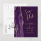 Cartão Postal De Anúncio Modern Agate Purple Dourado Plum Salvar Data