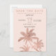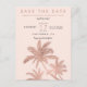 Moderno salvar data palmeiras elegante rosa bege. Moderno falso dourado palmeira com tipografia simples, um tema de casamento trendy e tropical salvar data na palmeira.