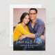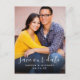Anuncie o seu casamento em estilo com estes modernos salve os cartões postais de lançamento de data que apresentam a sua foto de noivado com um roteiro "salve nossa data" design de sobreposição. Inclui texto na frente e no verso do cartão postal que pode ser personalizado com todos os detalhes importantes. Nota, o filtro de gradiente de foto escura pode ser removido.