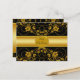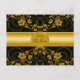Cartão Postal De Anúncio Monograma Floral de Casamento Dourado e Preto