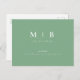 Cartão Postal De Anúncio Monograma Verde Simples e Moderno Save the Date