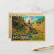 Vintage Montana Salve o cartão postal Date no estilo do médio. Apresenta uma paisagem rural lenhosa rústica com uma cabana de madeira e moinho de rodas de água, e um riacho bonito com folhas de outono para uma sensação de outono ou fim de verão. Esse cartão postal da "Montana Save The Date" será perfeito para um casamento ou natureza no campo e para um casamento de acampar.
