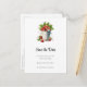Salve o cartão postal com um gráfico de verão de um monte de morangos transbordando em um balde.