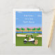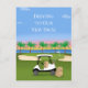 Este clássico carrinho de golfe senta-se num curso litoral ensolarado com palmeiras a balançar na brisa, carregado de caixas móveis. Uma maneira divertida e na moda para compartilhar sua jogada, esta design alegre e alegre traz um sorriso para amigos, família e colegas amantes de golfe quando eles recebem seu cartão-postal.