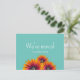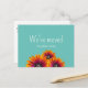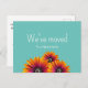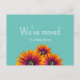Mudamos o cartão-postal de anúncio em movimento, com um design de margarida branca sobre um fundo verde teal. Com a inscrição personalizável, você adiciona suas próprias informações. Excelente por avisar amado sobre sua nova casa.