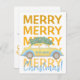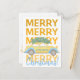 Anuncie seus parentes e amigos que você mudou para uma nova casa com esta moderna mostarda amarela e um cartão festivo de tipografia azul com um carregando de carro pintado manualmente e bonito, uma árvore de Natal. +++++++++++++ Fácil de personalizar com seus novos detalhes de endereço, desejos e assinatura de família em ambos os lados!
