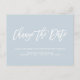 Cartão Postal De Anúncio Mudança de data de casamento em azul empoeirado ad