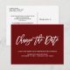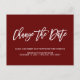 Precisa adiar ou remarcar o seu casamento? Alerte os seus convidados de que a data do casamento foi alterada com este anúncio de Adiamento de Casamento ou Mudança de Data Elegante, apresentando uma letra de caligrafia moderna que diz "Mudar a data" em branco sobre um fundo de borgonha merlot sofisticado.