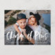 Postais de mudança de planos elegantes e modernos exibindo sua foto de noivado horizontal favorita com "Mudança de Planos" em uma sobreposição de letrairo de pincel branco e moderno. Personalize a frente do cartão de mudança de planos de foto adicionando seus nomes e texto de adiamento do casamento. O verso do postal apresenta seu endereço de retorno, nomes, site do casamento, etc.
