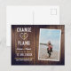 Anúncio de Mudança de Planos Elegante com Foto em Madeira Rústica em Cartão Postal