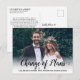 Mudança de Planos Nova Data de Casamento Anúncio de Casamento com Letra Caligráfica Minimalista Moderna em Cartão Postal